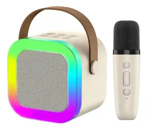 Fantásticos karaokes 🎤incluye una bocina con luces led de todos los colores 🌈 con diferentes modos ✅😁donde puedes reproducir la música que más te encanta 🎶también incluye un micrófono para karaoke 🎤🗣️ •luces led •Bluetooth •Memoria micro SD •Puerto auxiliar •Batería recargable (se debe cargar el parlante y también el micrófono) Incluye cable de carga
