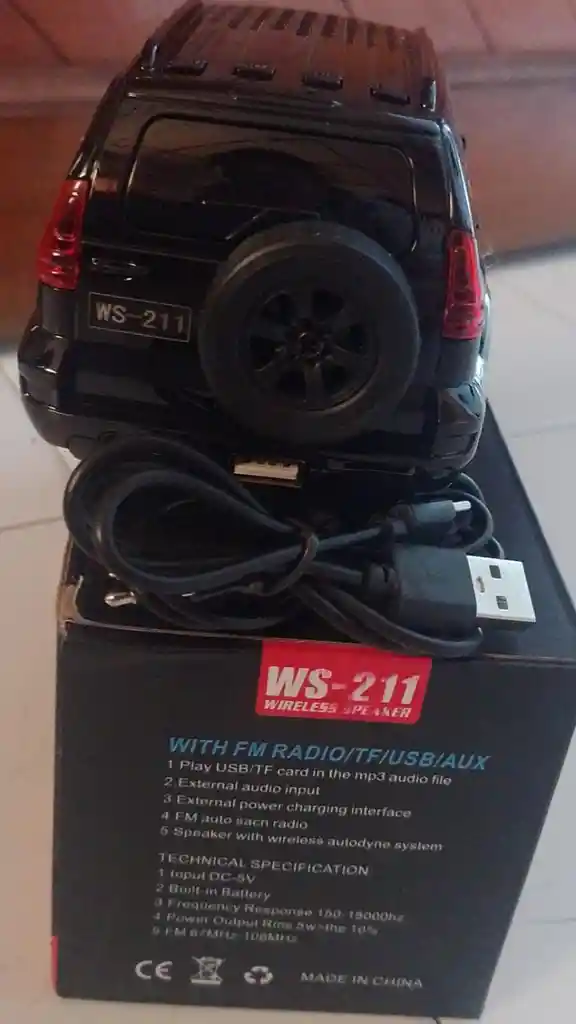 Parlante portable camioneta fm USB y micro Bluetooth 5v 220mmx88mm colores variados incluye cable 1x1 y cable USB