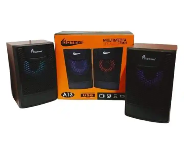 - Marca: Hotmai - Modelo: HT-A13 - Tipo:2.0 CH - Material de la estructura: Plástico ABS - Salida: 5W x 2 - Frecuencia: 100Hz a 20KHz - Sensibilidad: 65dB - Corriente de entrada: por puerto USB - Dimensiones: 19,5 x 10 x 9 cm