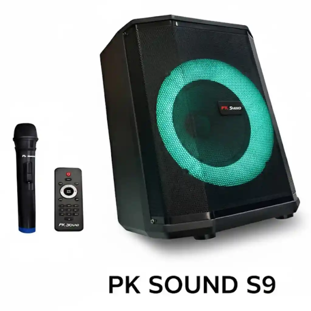 Parlante PK Sound S9 | 8” con Micrófono Inalámbrico – Sonido Potente y Portátil El PK Sound S9 es un parlante portátil de 8 pulgadas diseñado para ofrecer un excelente equilibrio entre potencia, tamaño y facilidad de uso. Su formato compacto lo hace ideal para reuniones familiares, celebraciones, actividades al aire libre, clases dirigidas y eventos pequeños donde se requiere buen volumen sin perder movilidad. Incluye micrófono inalámbrico, lo que lo convierte en una opción práctica para karaoke, animación, presentaciones o actividades recreativas. Su sonido es claro, con graves equilibrados y buena proyección tanto en interiores como en exteriores moderados. Especificaciones del Producto Modelo: PK Sound S9 SKU: S9 Tamaño del parlante: 8 pulgadas Tipo: Parlante portátil con micrófono inalámbrico Reproducción: Bluetooth, USB, tarjeta TF, entrada AUX, radio FM (según versión) Micrófono: 1 micrófono inalámbrico incluido Alimentación: Conexión eléctrica AC Construcción: Carcasa resistente para uso doméstico y semiprofesional Unidades por caja: 1 Contenido del Paquete 1 Parlante PK Sound S9 1 Micrófono inalámbrico 1 Control remoto 1 Cable de alimentación AC 1 Manual de usuario Garantía y Retracto Garantía: 3 meses por defectos de fábrica Retracto: 5 días hábiles según normativa vigente Nota Importante – Si el producto llega dañado, notifícalo a la transportadora dentro de las primeras 24 horas. – Todos los productos son verificados antes del envío. – Para hacer válida la garantía, se deben enviar fotos y/o videos donde se evidencie claramente la falla.