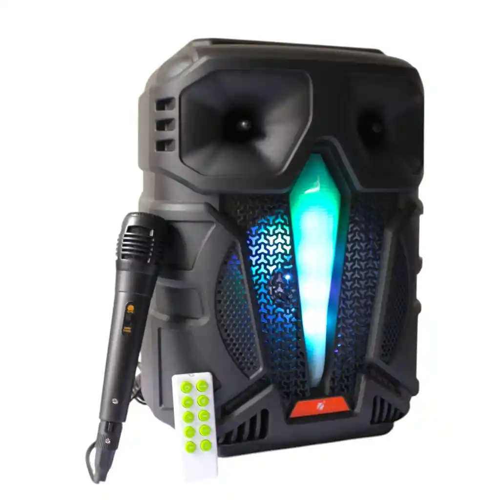 Disfruta de tus fiestas como nunca con este potente parlante portátil con luces LED. Ideal para reuniones, karaoke o eventos al aire libre. Su diseño moderno y resistente incluye conectividad Bluetooth, micrófono alámbrico con cable y control remoto para que lleves la diversión a otro nivel. ¡Luz, sonido y energía en un solo equipo! DETALLES Potencia: 10 W Sonido potente con excelente calidad de bajos Incluye micrófono alámbrico ideal para todo uso Control remoto para manejar volumen, pista y efectos Conectividad Bluetooth, USB, microSD y entrada auxiliar Luces LED multicolor sincronizadas con la música Diseño portátil y resistente, fácil de transportar Ideal para eventos, fiestas, presentaciones y uso en exteriores Ecualizador y funciones ajustables para personalizar el sonido Compatible con dispositivos móviles, tablets y portátiles Dimensiones Aproximadas: Largo 25 cm, Ancho 25 cm, Alto 35 cm *IMPORTANTE* El color del producto puede variar, según la disponibilidad en el momento* **INFORMACION IMPORTANTE **El color de la foto es referencial para que puedas ver los atributos del producto y al mismo tiempo es la opción 1 nuestra de despacho. Pero dejamos la aclaración para que lo tengas presente por si te llegara en otro color. ** NOTA : La foto de este producto ha sido ambientada, por lo cual no incluye ningún adorno, ni accesorios, ni piezas adicionales ni ningún otro elemento que lo acompañan. Observaciones De Garantía: 3 Meses **** La garantía de este producto es exclusivamente por defectos de fábrica, no por daños ocasionados por mal uso o por desconocimiento de uso del cliente. La garantía se tramitará bajo las políticas, términos y condiciones establecidos por la empresa. ****