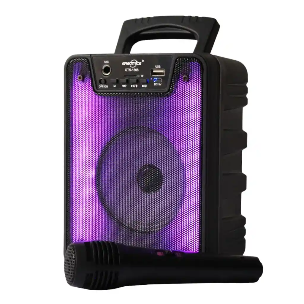 Disfruta de un sonido potente y una experiencia envolvente con este parlante portátil con luces LED. Ideal para fiestas, reuniones familiares, karaoke o actividades al aire libre. Su diseño compacto incluye micrófono con cable para animar cualquier evento y soporte para celular, ofreciendo entretenimiento sin límites. Compatible con múltiples modos de reproducción como USB, tarjeta TF y entrada AUX. ¡Lleva la música a donde quieras con estilo y diversión! DETALLES Potencia 5 W Sonido Claro y Potente para espacios interiores o exteriores Conectividad Bluetooth para reproducir música sin cables Micrófono Con Cable Incluido, ideal para karaoke y animaciones Luces LED Integradas que iluminan al ritmo de la música Soporte Para Celular incorporado para mayor comodidad Entrada USB, TF y AUX 3.5mm para múltiples opciones de conexión Batería Recargable con cable de carga incluido Botones De Control Integrados (volumen, modo, reproducción) Diseño Compacto Y Portátil fácil de llevar a cualquier lugar Color Del Producto Puede Variar según disponibilidad Dimensiones Aproximadas: 20 ALTO X 15 ANCHO X 10 LARGO *IMPORTANTE* El color del producto puede variar, según la disponibilidad en el momento* **INFORMACION IMPORTANTE **El color de la foto es referencial para que puedas ver los atributos del producto y al mismo tiempo es la opción 1 nuestra de despacho. Pero dejamos la aclaración para que lo tengas presente por si te llegara en otro color. ** NOTA : La foto de este producto ha sido ambientada, por lo cual no incluye ningún adorno, ni accesorios, ni piezas adicionales ni ningún otro elemento que lo acompañan. Observaciones De Garantía: 1 Mes **** La garantía de este producto es exclusivamente por defectos de fábrica, no por daños ocasionados por mal uso o por desconocimiento de uso del cliente. La garantía se tramitará bajo las políticas, términos y condiciones establecidos por la empresa. ****