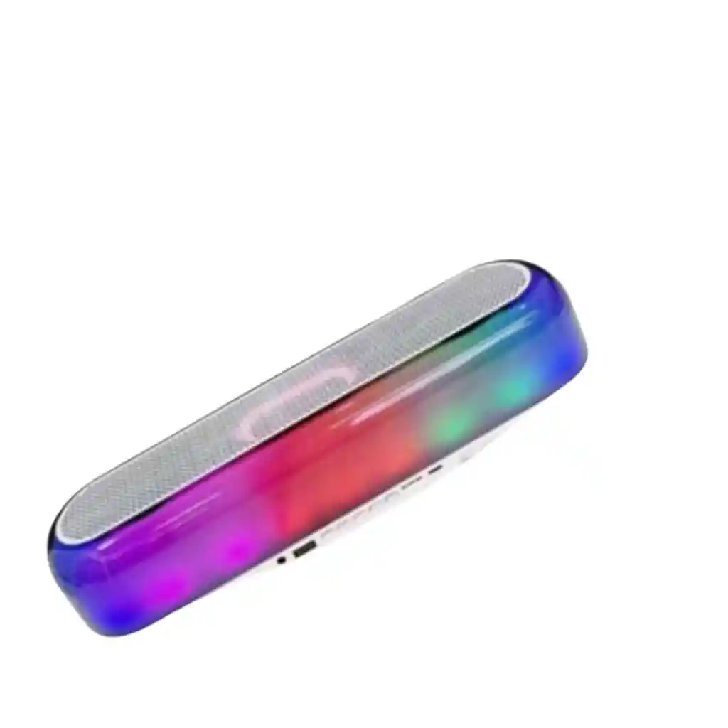 Mini barra de sonido Función Bluetooth 5.5 Entrada USB/ Micro SD Entrada AUX Radio FM Micrófono incorporado Iluminación RGB Potencia 10W Conexión TWS (conectar otro parlante) Batería recargable 1500mAh Frecuencia 60Hz-23KHz
