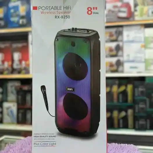 PARLANTE PORTABLE DE 8" DISPONIBLE ! Cuenta con: -2000W -Batería recargable -Puerto USB y SD -Conexión Bluetooth -Luces LED La caja cuenta con: -Parlante de 8" -Micrófono alámbrico