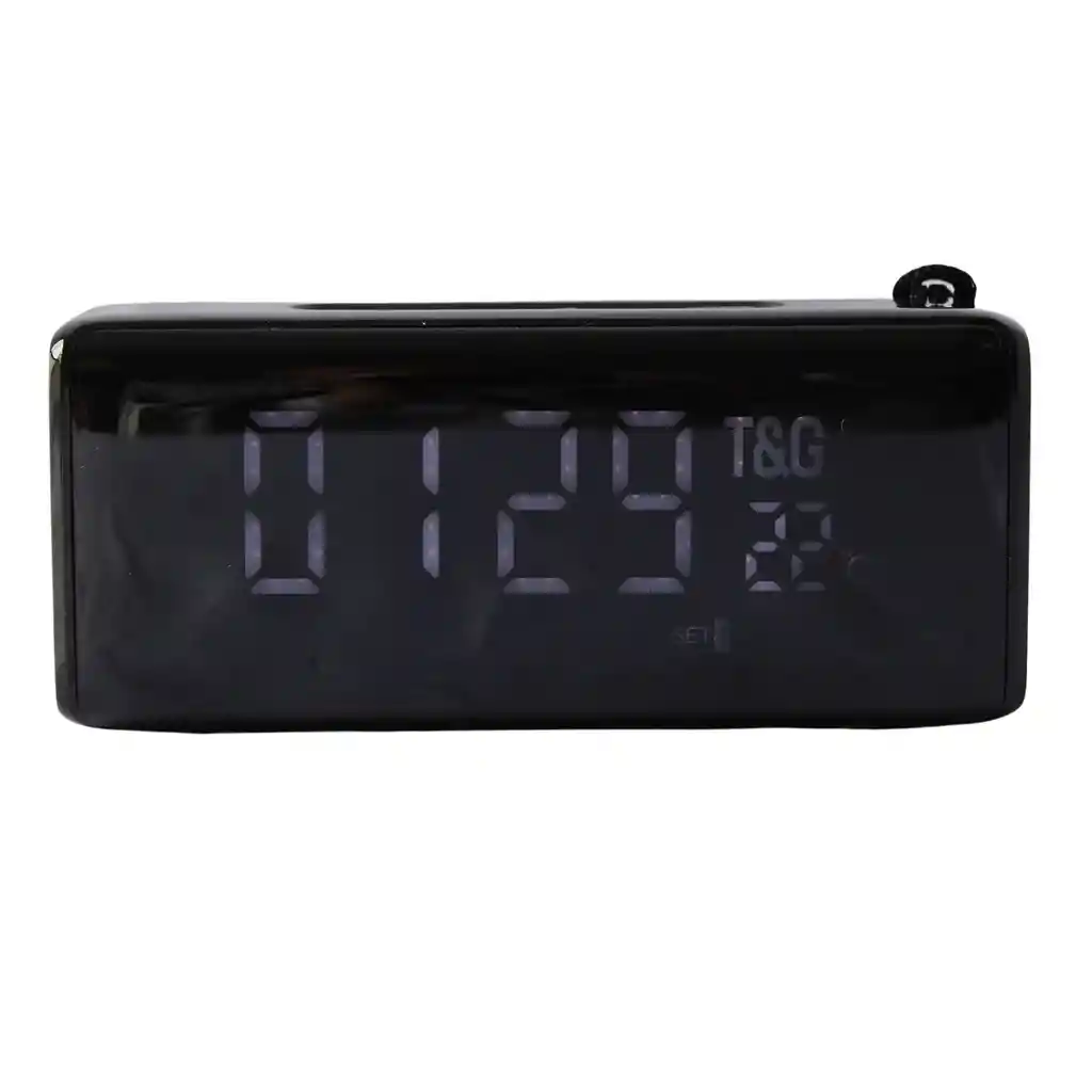 Parlante radio reloj portátil con alarma. Reloj de tiempo y pantalla de temperatura de soporte. Reproduce música vía Bluetooth, USB, micro SD, auxiliar, además tiene radio FM. También podrás contestar las llamadas cuando tu celular esté conectado al parlante. Diseño moderno. DETALLES Con TWS para conectar 2 parlantes y amplificar el sonido en diferentes lugares. Excelente sonido. Ideal para usar en casa. Soporte de reloj de alarma, reloj de tiempo Pantalla de temperatura de soporte Batería recargable. Versión Bluetooth: 5.0 Radio FM, entrada de tarjeta microSD, entrada de USB, entrada auxiliar. Capacidad de la batería: 1200 mAh. Tiempo de carga: 2-3 horas. **INFORMACION IMPORTANTE **El color de la foto es referencial para que puedas ver los atributos del producto y al mismo tiempo es la opción 1 nuestra de despacho. Pero dejamos la aclaración para que lo tengas presente por si te llegara en otro color.**