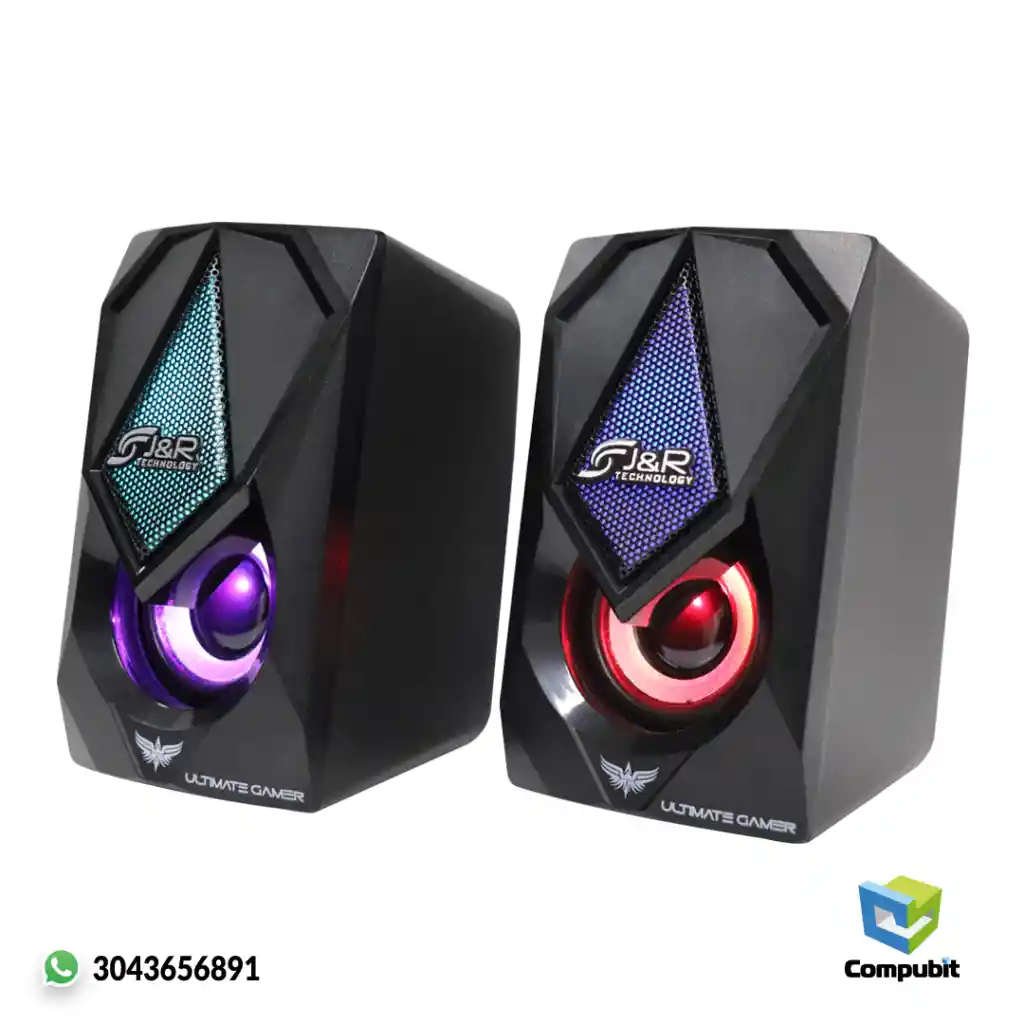 Parlantes USB Gamer JYR J5200 Ambienta tu estilo de juego, diseño compacto para computador, Laptop y celulares. Características: 7 colores LED Altavoces de máxima calidad Alimentación por USB. Fácil instalación. Perfectos para los Juegos. Conector de 3.5mm. Amplificador de Alta potencia IC. Soporta entrada auxiliar de 3,5MM Amplificador de alta potencia Fuente de alimentación por puerto USB Diseño compacto para computador Laptop