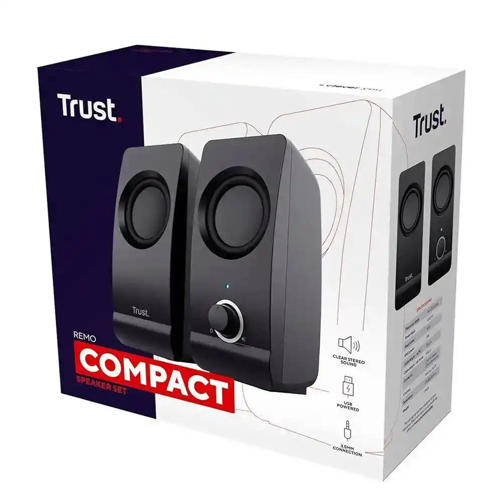 Trust Remo 2.0 Speaker Set – Sonido Estéreo Compacto y Potente ¡Transforma tu experiencia de audio con el Trust Remo 2.0 Speaker Set! Este elegante y compacto sistema de altavoces estéreo ofrece un sonido claro y potente, ideal para complementar tu PC o laptop. Características Destacadas: Potencia Óptima: Con una potencia de salida RMS de 8W y hasta 16W de potencia máxima, disfruta de un sonido nítido y envolvente. Diseño Compacto y Elegante: Su tamaño reducido y diseño moderno se adapta perfectamente a cualquier espacio, ya sea en casa o en la oficina. Conectividad Sencilla: Conecta fácilmente a tu PC o laptop mediante un cable de audio de 3.5 mm y alimentación USB, sin necesidad de adaptadores adicionales. Control de Volumen Frontal: Ajusta el volumen de manera rápida y cómoda con el control ubicado en la parte frontal del altavoz. Apagado Automático: Los altavoces se apagan automáticamente cuando no están en uso, ahorrando energía y prolongando su vida útil. Especificaciones Técnicas: Potencia de Salida RMS: 8W Potencia Máxima: 16W Conectividad: Entrada de audio de 3.5 mm, alimentación USB Dimensiones: 175 mm (alto) x 80 mm (ancho) x 80 mm (profundidad) Peso: 600 g Compatibilidad: PC, laptops Beneficios Clave: Sonido Claro y Potente: Ideal para escuchar música, ver películas o jugar videojuegos con una calidad de audio superior. Fácil Instalación: No requiere instalación de software; simplemente conéctalos y listo. Eficiencia Energética: Alimentados por USB, eliminando la necesidad de enchufes adicionales. Diseño Moderno: Combina con cualquier decoración y ahorra espacio en tu escritorio. EXPOTECNOLOGIA 3505945136