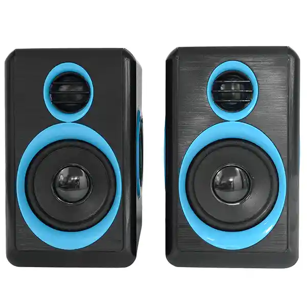 Parlantes USB super bass, con excelente diseño, este producto cuenta con las siguientes características: -Conexión USB. -Salida de audio 3.5MM. -Bajos. -6 Watts. -Color azul.