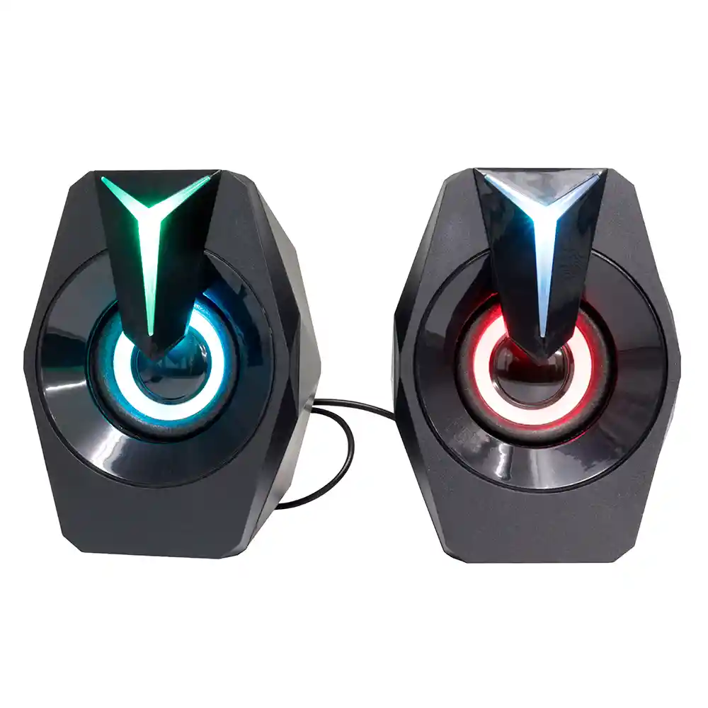 Parlantes pc – Bocinas 2 Plg – Conexión usb + audio 3.5mm – 6w – Diseño gamer – Luz rgb – Control de volumen – Cable 1,3mtr