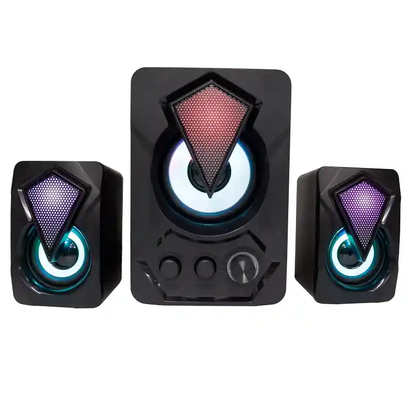 Parlantes pc 2.1 - Bocinas 52mmx2 - Conexión usb + audio 3.5mm - 0.5wx2 - Luz rgb - Control de volumen - Cable 1,3mtrs