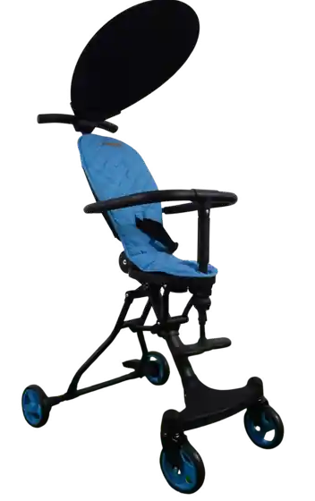Multi-posiciones de reclinado desde acostado hasta sentado totalmente. Descansa pies Graduable Arnés de seguridad de 5 puntos. 4 ruedas giratorias a 360 grados delantera.