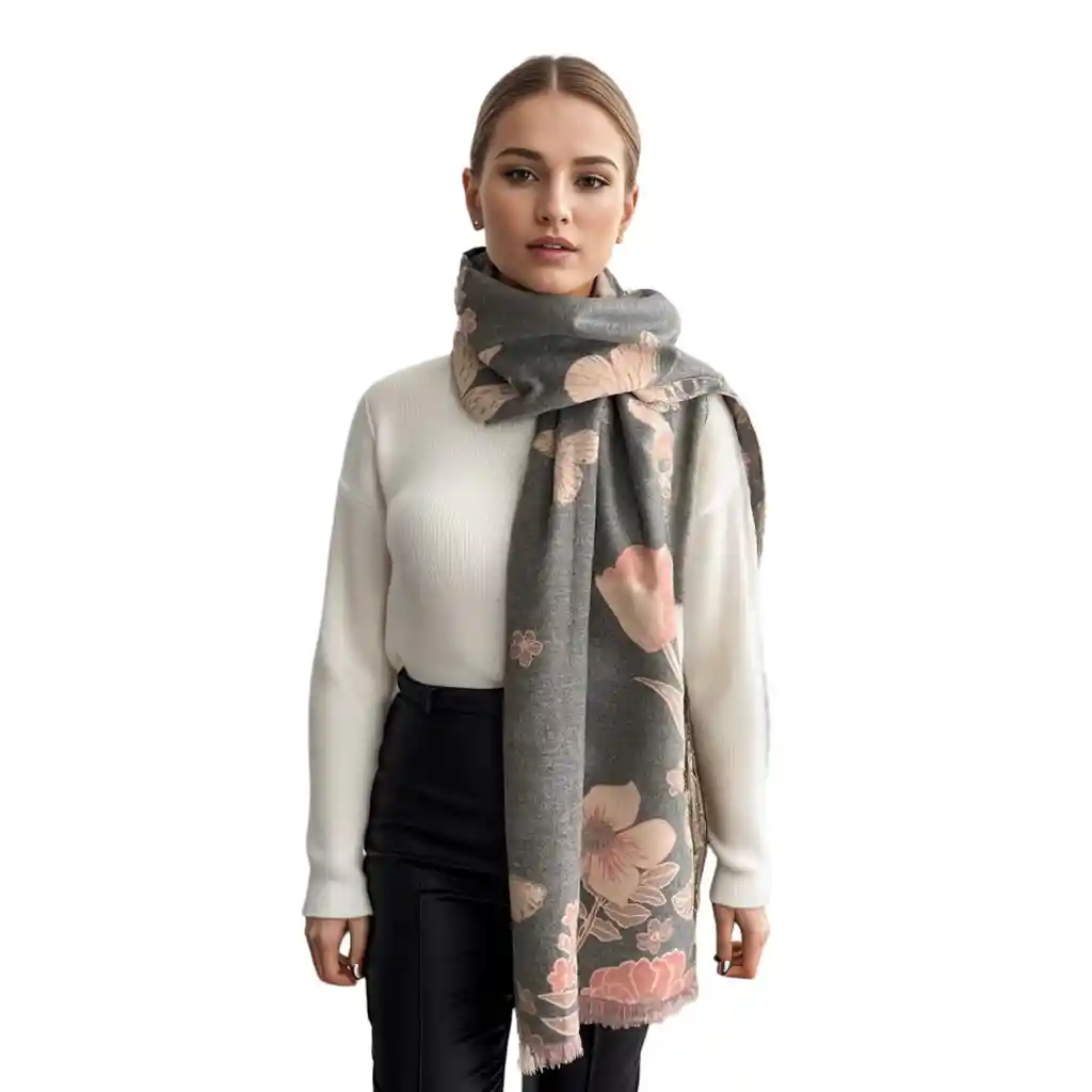 Pashmina Bufanda Gris Doble Faz Azul por un lado Gris por el otro lado,
