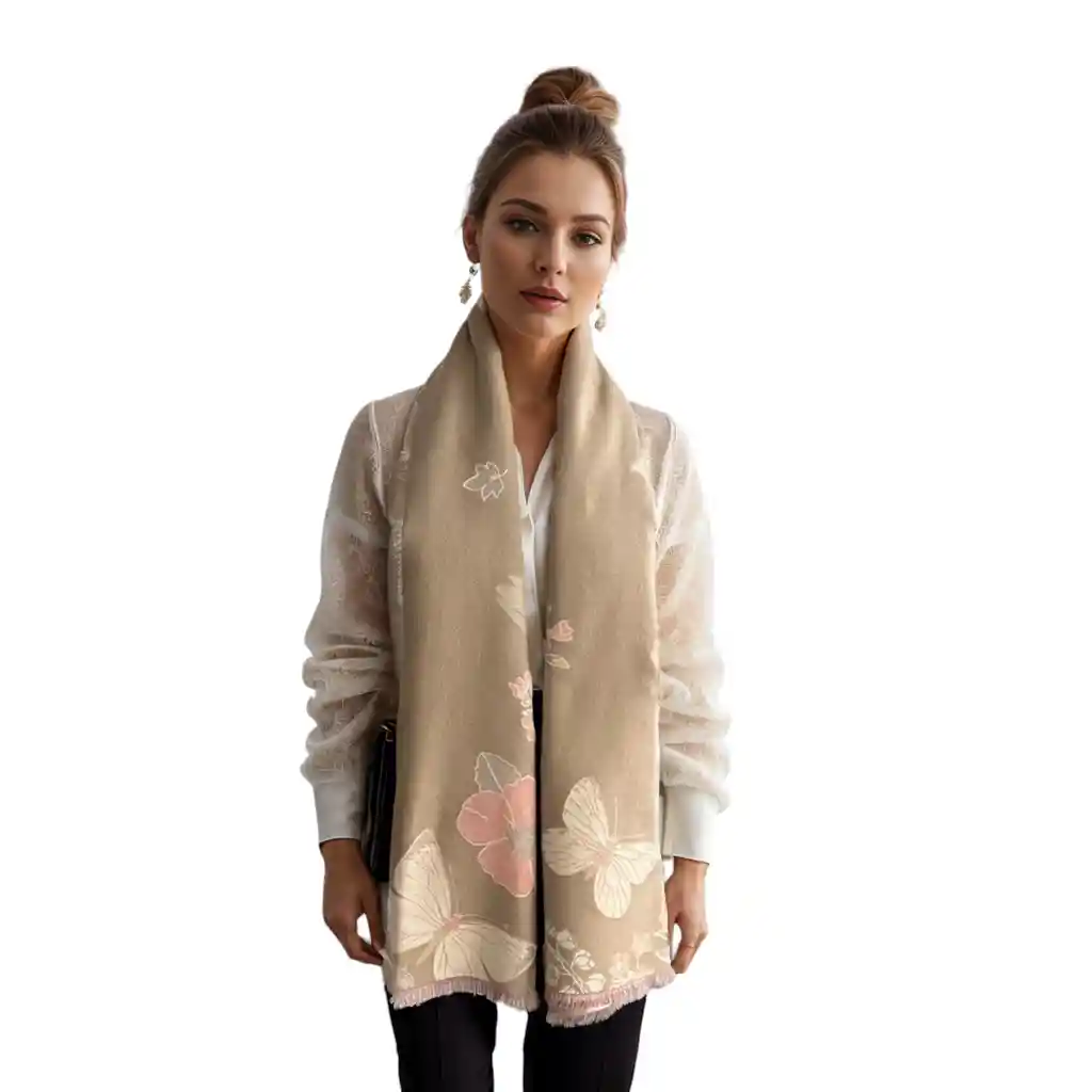 Pashmina Bufanda Flores Doble Faz Beige por un lado crema por el otro