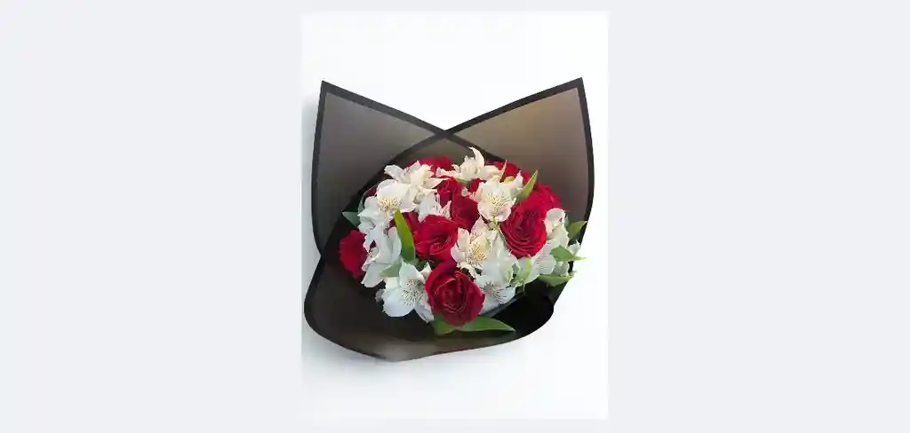 Bouquet con aprox. 12 rosas rojas y 1 paquete de astromelia blanca. Nota: La flor puede ser sustituida dependiendo la disponibilidad de color y del producto “Mensaje Personalizado” máximo de 30 caracteres (Dejar el mensaje en el chat, los comentarios no se previsualizan para la tienda por lo que si se dejan allí no podrá ser incluido).