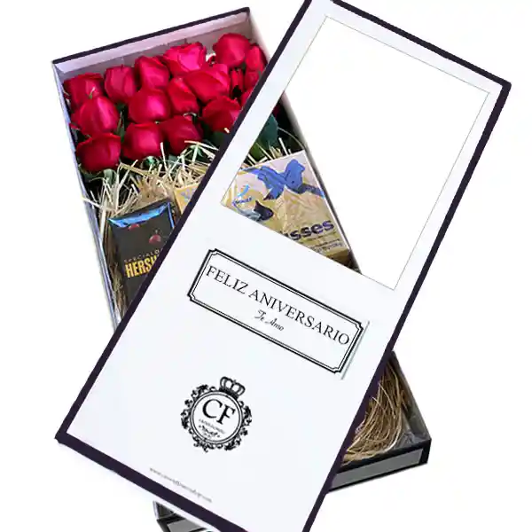 Lujosa caja con rosas de casi un metro! Contiene 18 rosas rojas de exportación, con tallo de 70cms cortados en escala, y chocolates Hershey's. Sticker ubicado en cubierta de la caja y un sobre adentro del estuche donde va el mensaje dedicatorio. ELIJE EL MENSAJE STICKER: "Te amo con todo mi corazón" ; "Feliz cumpleaños" ; " Feliz dia con mucho cariño" ; " Mami eres el regalo más grande " ; " Mami feliz dia, te amo"