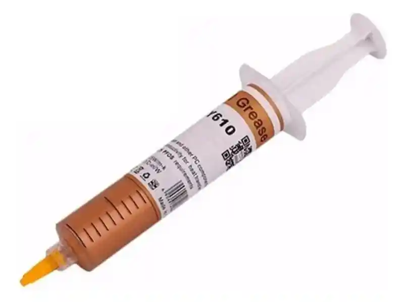 Mejora la refrigeración de tus equipos con la Pasta Térmica Dorada en presentación de jeringa de 20 gramos, formulada para ofrecer una excelente conductividad térmica y garantizar un desempeño estable en procesadores, tarjetas gráficas, chips LED y otros componentes que requieren disipación eficiente del calor. Características técnicas: Presentación: Jeringa de 20 gramos. Color: Dorado. Conductividad térmica: Alto nivel de transferencia de calor. Aplicación: CPU, GPU, chips LED, disipadores y equipos electrónicos. Consistencia: Suave, viscosa y fácil de aplicar de manera uniforme. Beneficios: Evita sobrecalentamientos y fallas en los componentes. Prolonga la vida útil de procesadores y circuitos electrónicos. Mayor cantidad de producto (20g) para múltiples aplicaciones o mantenimientos. Presentación en jeringa para aplicación limpia, precisa y sin desperdicio. Advertencias: Aplicar únicamente una capa delgada y uniforme. No ingerir, evitar el contacto con piel y ojos. Mantener fuera del alcance de los niños. Garantía del vendedor: Este producto no cuenta con garantía, ya que se trata de un insumo de consumo y uso directo. TECNO ANDRES – Tecnología funcional a tu alcance.