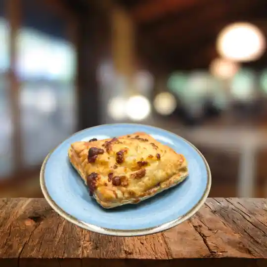 Pastel artesanal hawaiano en capa de queso mozarella el horno, piña, jamón y queso.