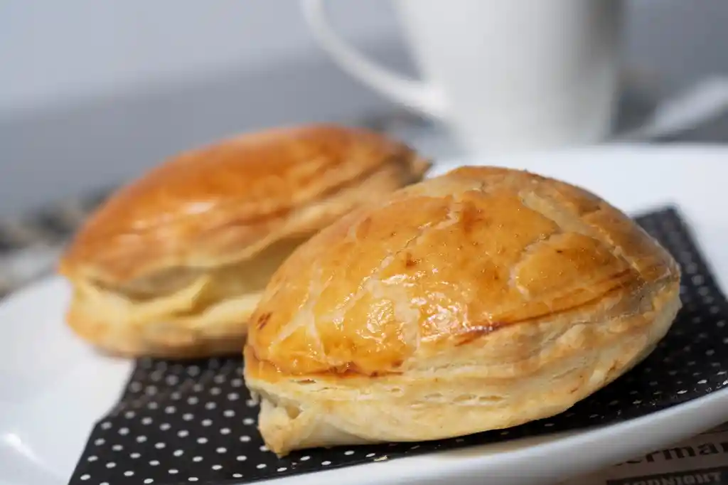 Pastel de horneado en pasta de hojaldre de 140 gr, relleno con carne y arroz.