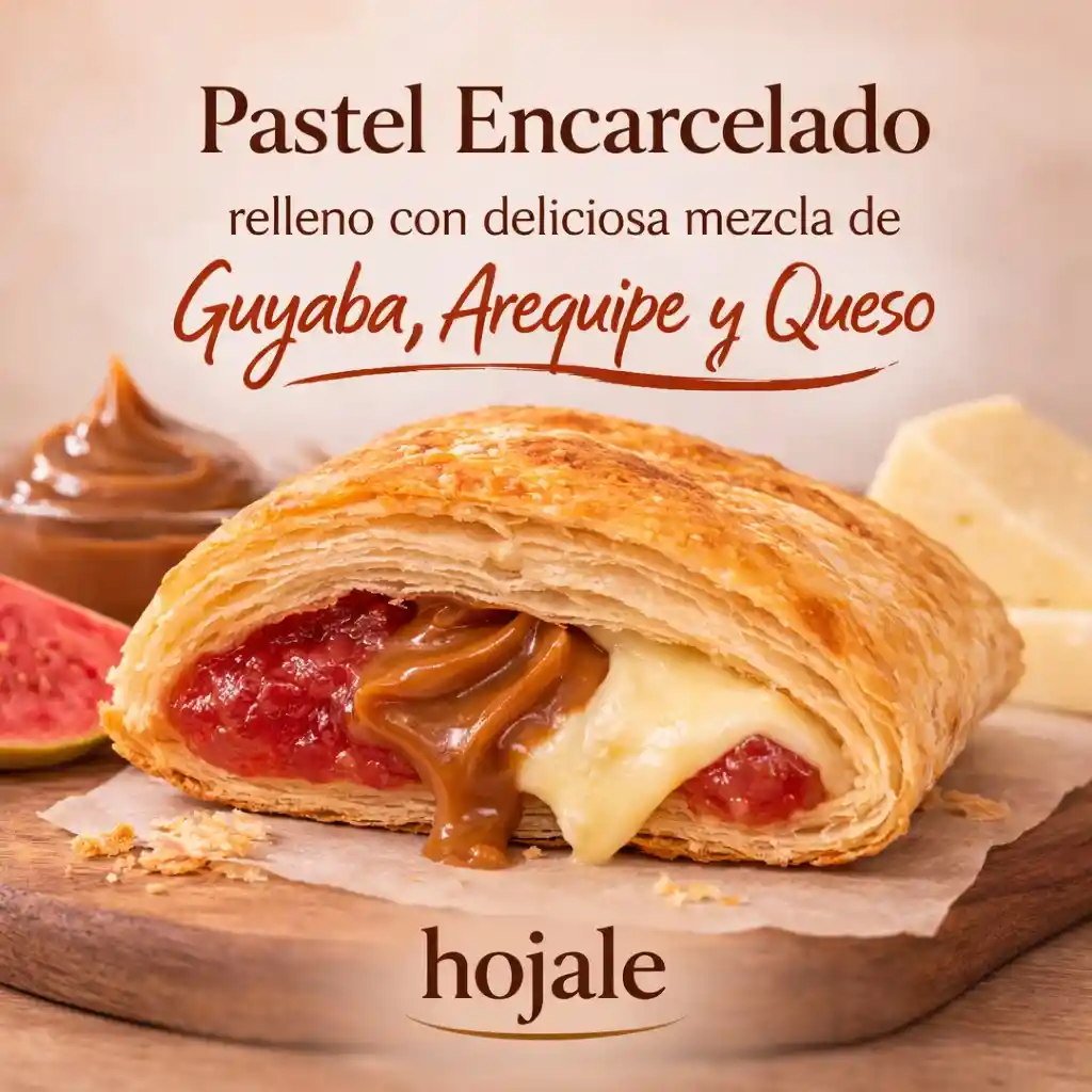Pastel especial de hojaldre relleno con Arequipe, Queso y Guayaba.