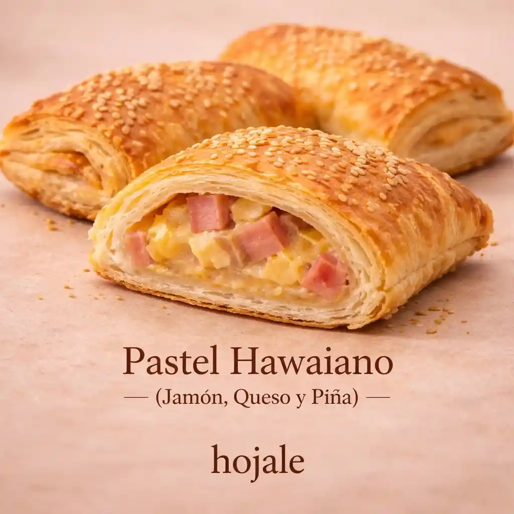 Pastel crocante relleno con jamón, queso y piña, sabor tropical con un toque salado irresistible.