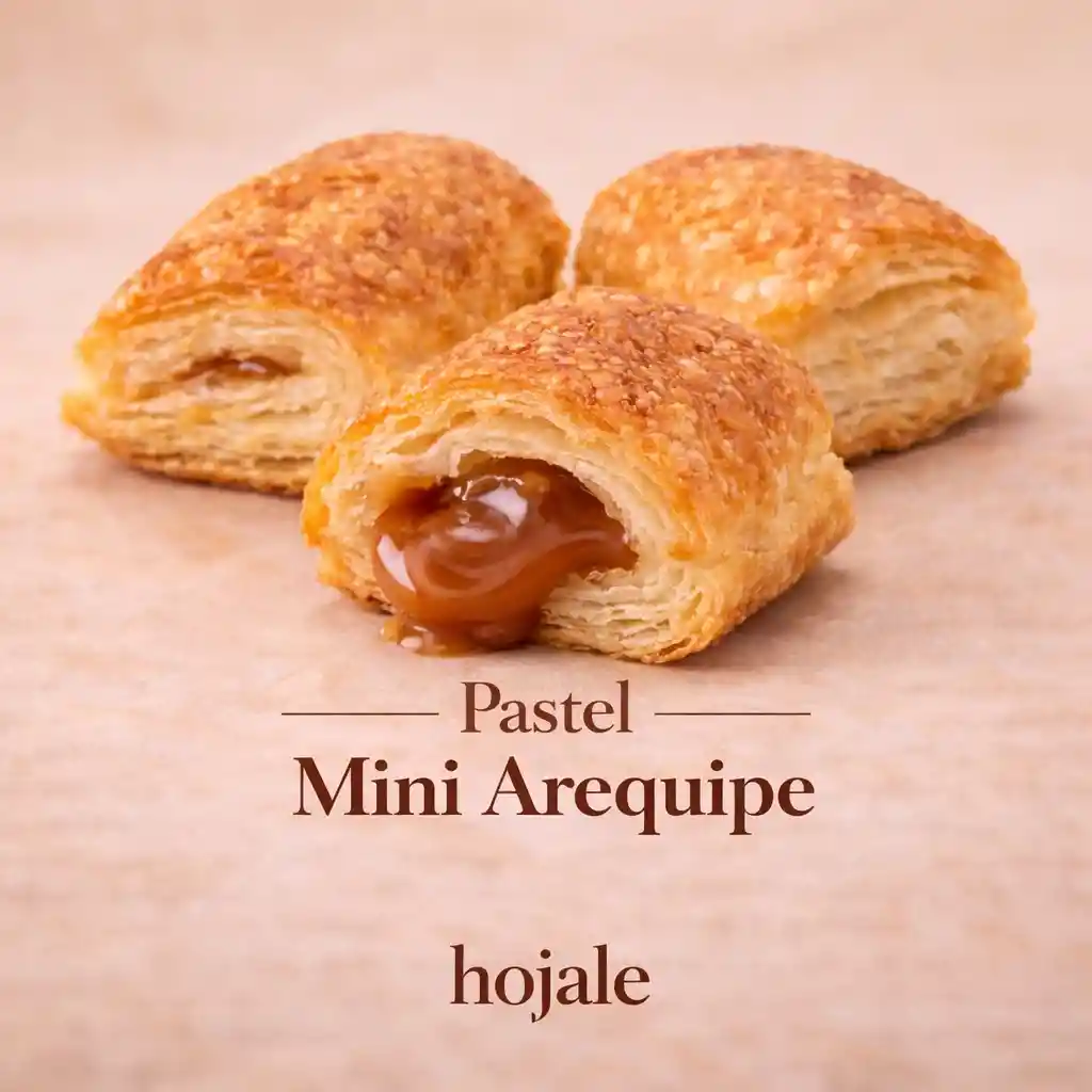 Mini pastel crujiente relleno de arequipe dulce, ideal para un snack delicioso.