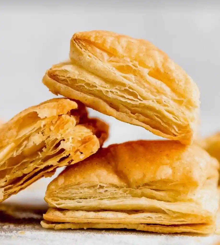 Pastel ranchero de hojaldre relleno de queso, jamón y cabano.