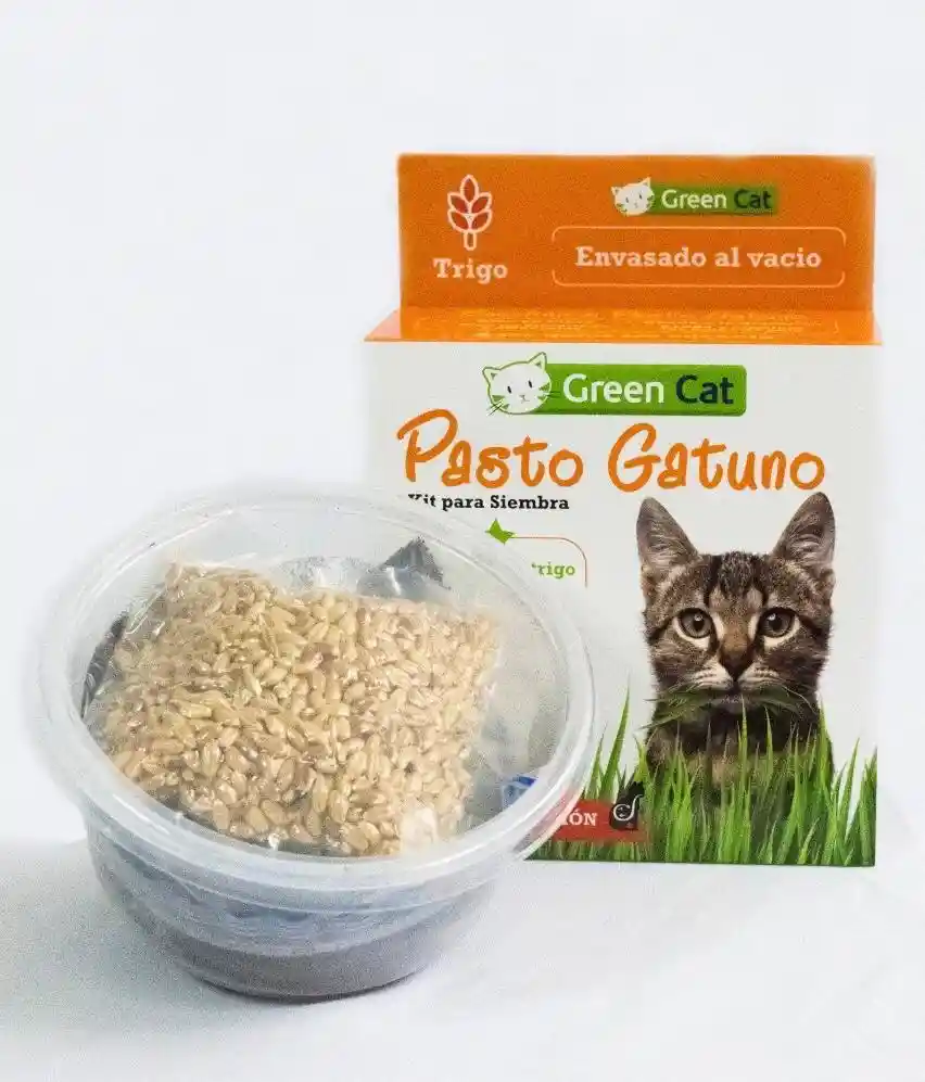 Kit de siembra de pasto o hierba para gatos. Semilla de trigo Pasto rico en fibra, vitaminas y minerales que ayudan con la digestión de los gatos, además facilita la eliminación natural de las bolas de pelo. El kit incluye: - Maceta plástica - Semilla de trigo (40gr aproximadamente) - Sustrato orgánico