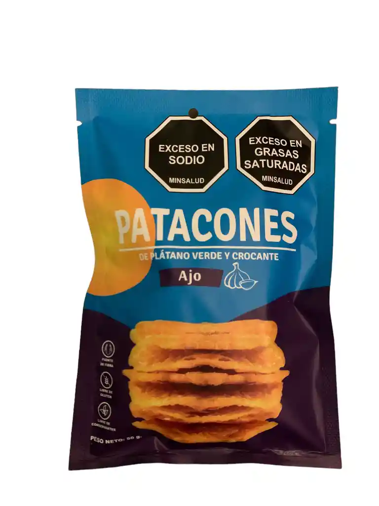 Patacones de ajo de plátano verde y crocante. Libre de gluten, sin conservantes y buena fuente de fibra (56 g).