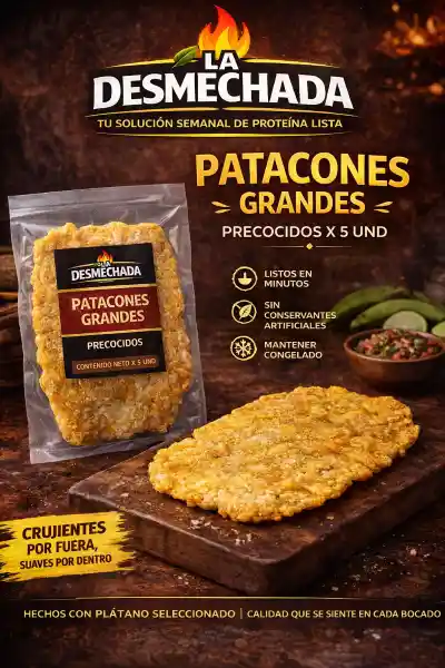 Disfruta el auténtico sabor del plátano en su mejor versión 🍌🔥 Nuestros patacones de plátano verde vienen pre-cocidos y listos para preparar, ideales para quienes buscan practicidad sin perder el sabor casero. Cada unidad está cuidadosamente elaborada para lograr una textura perfecta: crujientes por fuera y suaves por dentro, tal como te gustan. Son la solución perfecta para acompañar tus comidas o crear recetas deliciosas en minutos. Solo necesitas calentarlos y tendrás un producto fresco, dorado y listo para disfrutar en casa. Gracias a su proceso de pre-cocción y congelación, conservan su sabor, textura y calidad, permitiéndote tener siempre a la mano una opción rápida, versátil y deliciosa.