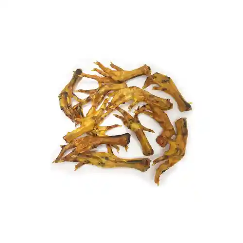 Las patas de pollo deshidratadas son una golosina popular para perros, apreciada por sus beneficios nutricionales y su capacidad para mantener ocupadas a las mascotas mientras mastican. Salud Dental: Masticar patas de pollo puede ayudar a limpiar los dientes y encías de los perros, reduciendo la acumulación de placa y sarro. Fuente de Glucosamina y Condroitina: Estos nutrientes son esenciales para la salud de las articulaciones, ayudando a mantener la movilidad y reducir el riesgo de problemas articulares. Alta en Proteínas y Baja en Grasas: Las patas de pollo son una fuente natural de proteínas, importantes para el desarrollo muscular y la energía, y tienen un contenido relativamente bajo en grasas. Natural y Sin Aditivos: Al ser deshidratadas, conservan sus nutrientes sin necesidad de aditivos o conservantes artificiales. Supervisión: Siempre supervisa a tu perro mientras mastica para prevenir riesgos de asfixia. Tamaño Adecuado: Asegúrate de que las patas de pollo sean apropiadas para el tamaño de tu perro. Hidratación: Asegúrate de que tu perro tenga acceso a agua fresca y limpia después de consumir golosinas deshidratadas. Tipo de mascotas: Perros Tamaño de raza: Todas las razas Especialidad: Nutrición