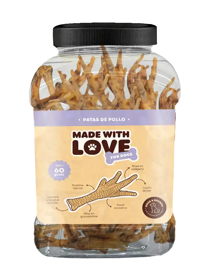 Patas de pollo deshidratadas 100 % naturales sin conservantes ni aditivos. Recomendaciones: Dar bajo supervisión. Es un suplemento recreativo NO un alimento completo. Apto para todas las razas y tamaños. Almacenar en un lugar fresco.