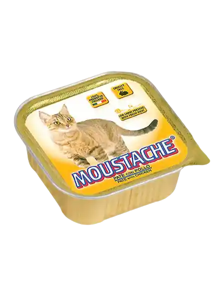 Moustache Paté con Pollo es un alimento completo formulado para gatos adultos. El suave y sabroso paté al vapor ha sido especialmente diseñado para ofrecer a tu mascota una alimentación equilibrada. La receta ha sido enriquecida con vitaminas A-D3-E. Sin la adición de colorantes, conservantes y azúcares.