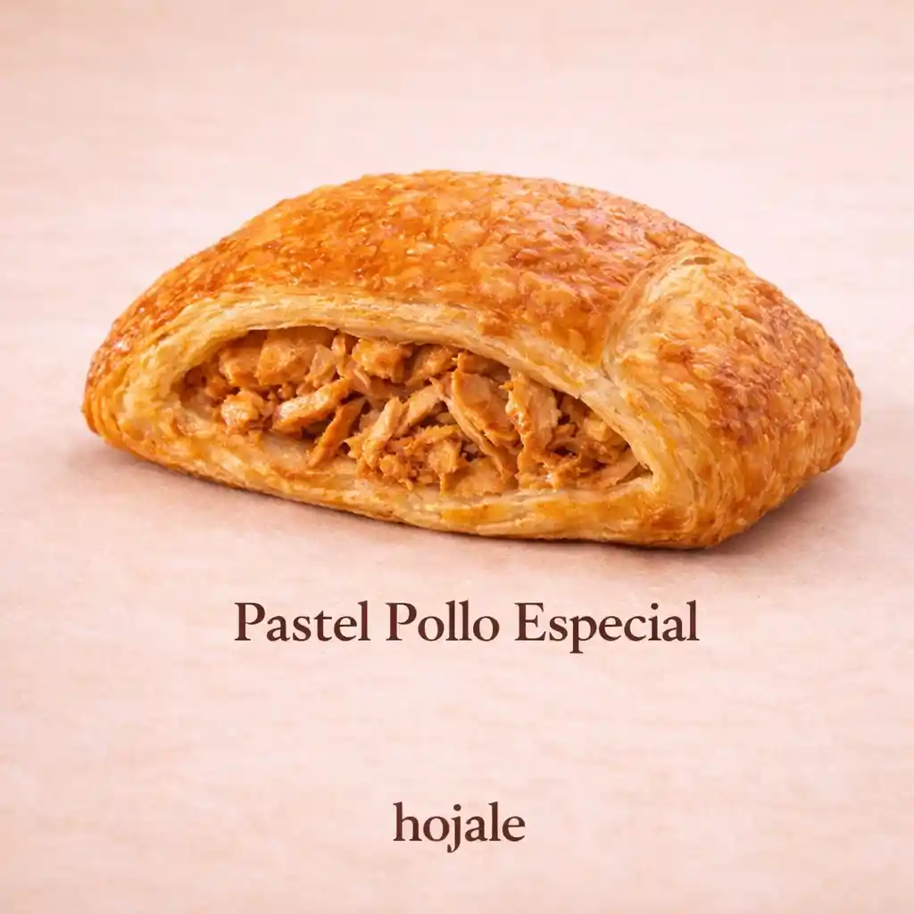 Pastel relleno con pollo sazonado y receta especial de la casa.