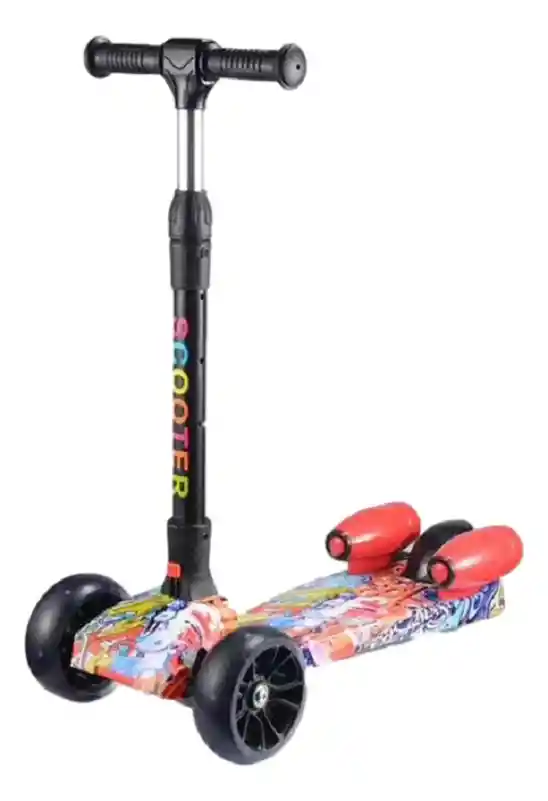CARACTERÍSTICAS: -Plegable, fácil de guardar y llevar -Ideal para niños de 3 hasta 10 aproximadamente -Manillar graduable fácilmente -Tiene luces led en las ruedas delanteras -Con turbinas de humo -Bluetooth para poner la música que quieras desde tu celular -Con luces en las turbinas -Llantas en goma PU Wheel (Poliuretano) -Dimensiones aproximadas: 78 x 62 x 29 -Altura del manubrio ajustable (60cm – 66cm – 72cm – 78cm) -Peso del producto: 4.5 kg -Capacidad máxima recomendada: 50 kg -Freno de pie en la llanta trasera -Tiene 3 sonidos incorporados -Se puede recargar o usar con pilas -Incluye cable usb