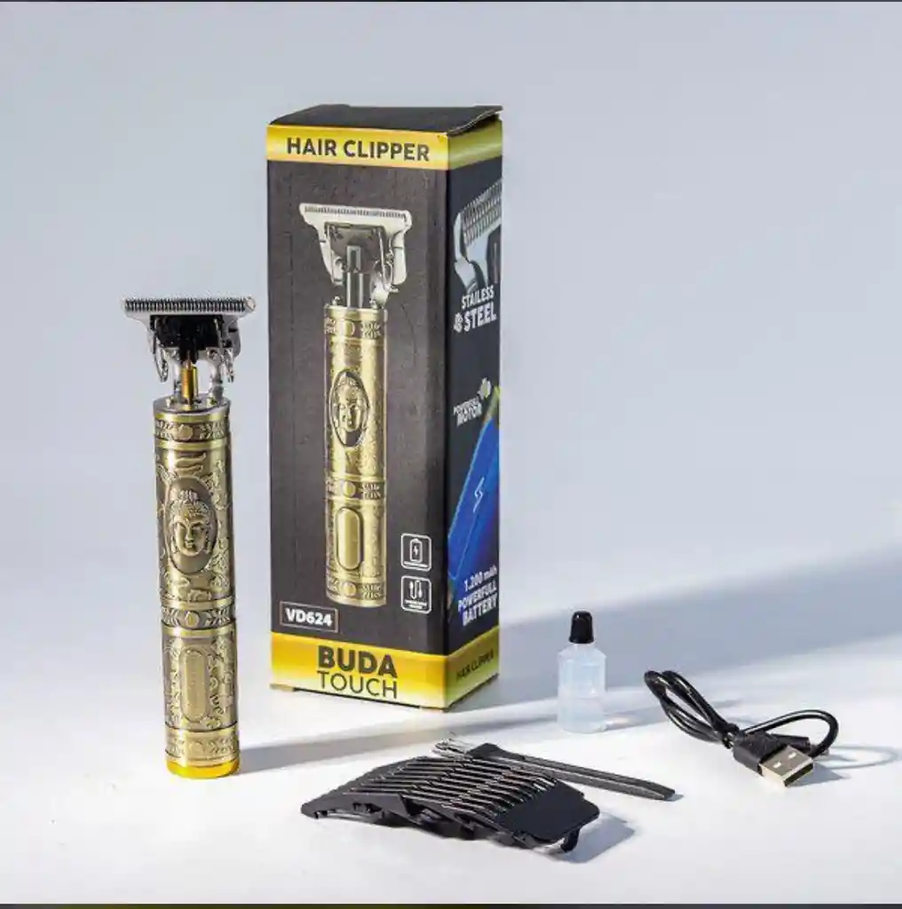 Maquina Patillera Buda VD624 Touch Inalámbrica La Maquina esta construida en metal, diseño premiun y elegante, espectacular totalmente reluciente. Cuenta con 4 guias del 1.5 al 4. Tiene una cuchilla cromada de acero que están precisamente afiladas para que se mantengan de ese modo por más tiempo, su motor es resistente, de larga duración y cuenta también con palanca para corte ajustable Usted podrá recortar y mantener cuidado su cabello, crear y definir el mejor estilo que desea lucir y no tendrá que salir de casa ni dedicar largo tiempo y dinero a su cuidado personal. La afeitadora está diseñada para resistir y recortar a la perfección, ya que está dotada de cuchillas cromadas de gran precisión, de alta calidad y muy duraderas Inalámbrico. Método de carga USB. Cuchilla de precisión profesional. 4 guías de corte.