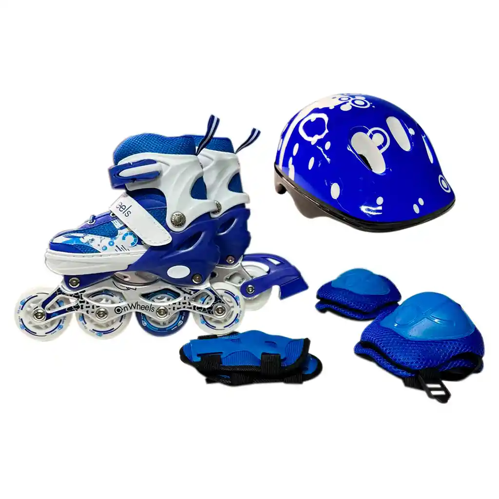RECUERDA: Es recomendable utilizar 2 tallas mas del calzado normal del niño para que no le quede tan ajustado. MATERIAL: Chasis en aluminio, bota ergonómica, talla ajustable. TALLAS: 29-33 y 34-38. RUEDA: Goma. RODAMIENTO: Genérico. COLORES: Azul, Agua Marina y Rosa (sujeto a existencias). ACCESORIOS: Casco, rodilleras, coderas, guantes, maleta transparente. IMPORTANTE: - Los Patines se envían con las ruedas "Linea". - Solo incluye un Adaptador para la rueda. - El cliente es quien hace la modificación en las ruedas.