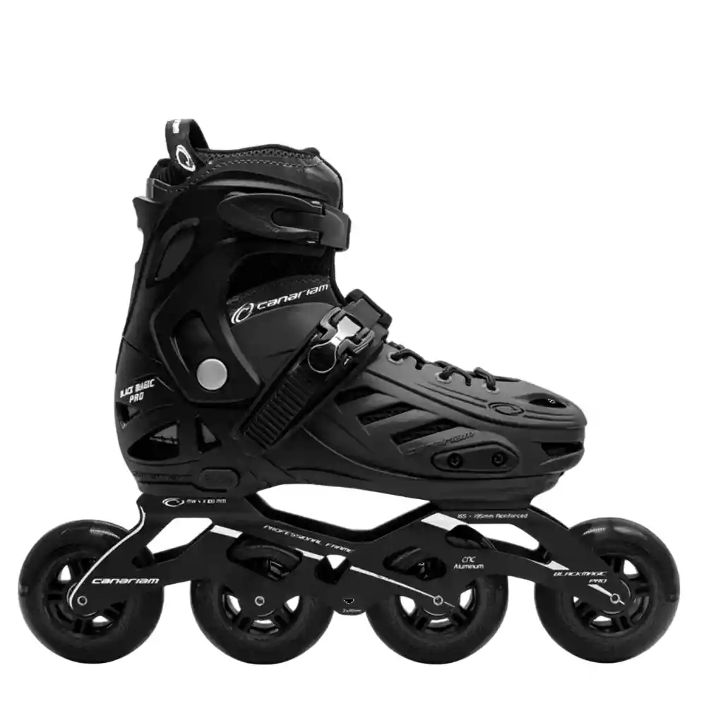 Patines Black Magic Pro Plus son patines en línea semiprofesionales y recreativos ajustables por talla, diseñados para acompañarte desde el aprendizaje hasta rutas más dinámicas. Su chasis de aluminio profesional y ruedas de poliuretano de alta calidad brindan estabilidad, suavidad y resistencia a golpes y rozaduras. Características: - Uso semiprofesional y recreativo: ideales para iniciación, aprendizaje y paseo. - Sistema ajustable por tallas: permiten ajustar el tamaño del patín para prolongar su uso a medida que crece el pie. - Chasis profesional de aluminio: resistente, ligero y adaptable incluso a botas profesionales en tallas mayores. - Ruedas de poliuretano de alta calidad: proporcionan durabilidad, buen rebote y deslizamiento suave. - Rodamientos ABEC 11: para rodar con fluidez y mejor desempeño. - Botín acolchado y soporte en el tobillo: comodidad brinda y estabilidad. - Freno en pie derecho (en tallas pequeñas): fácil control al detenerse. - Peso máximo recomendado del usuario: hasta ~75 kg (según talla). - PESO: 2500 Grs. - VOLUMEN POR UNIDAD: 1 VOL 1 Patín 380mm x 245mm x 95mm aproximadamente. PESO MÁXIMO POR USUARIO (Kg): Talla 35-38: Máximo 65 kg MATERIAL, COMPOSICIÓN, ESPECIFICACIÓN, %: 45% de plástico, 25% de tela, 30% en: Rodamientos ABEC 11, ruedas en poliuretano de alta calidad, bujes y centros profesionales en acero, cordones, bucle con correa de seguridad, recibidor en PVC y chasis profesional en aluminio. TALLAJE: 31-34, 35-38. GARANTÍA: 3 Meses por imperfectos de fabricación ÚNICAMENTE. LA GARANTÍA CUBRE: BOTA: Descosido en acolchado, diferencia de tonalidad de la pasta de PVC, patín trocado, talla trocada. CHASIS: Por fisura o fractura. RUEDA: Imperfecciones en el poliuretano, desprendimiento o fractura del rin.