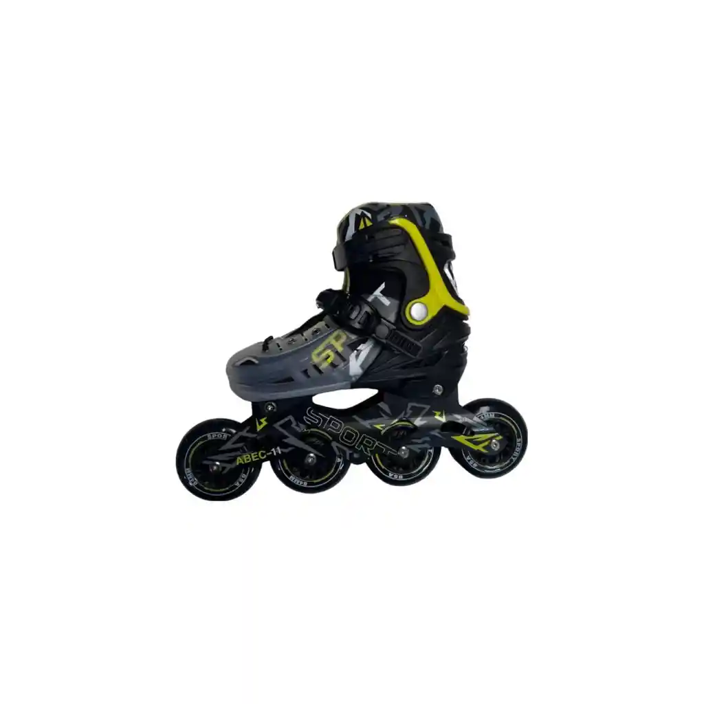 ¡Lleva la diversión y seguridad sobre ruedas al siguiente nivel! Nuestros patines semiprofesionales en línea para niños y niñas vienen en tres impactantes colores: morado, fucsia y amarillo, e incluyen todo lo necesario para una experiencia completa: Patines sport en combo rueda de y una dureza de 84A Incluye: rodilleras coderas protector de mano y casco de alta protección y maletín Chasis metálico Ruedas en poliuretano Chasis ABEC-11 - Talla M (35- 38) Rueda 84mm.