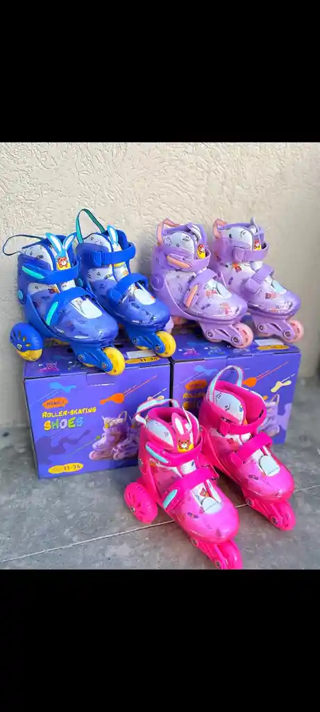 https://checkout.bold.co/payment/LNK_KFDTD0N2T5⭐Patines infantiles tipo roller-skating shoes con diseño ajustable. 🎨 Colores disponibles Azul, Lila, Fucsia 📏 Tallas • Ajustables: 31 – 34 (Ideales para acompañar el crecimiento del niño o niña) 🛞 Tipo de ruedas • Configuración de 4 ruedas estables (dos posteriores anchas + dos delanteras en línea). • Ruedas delanteras dobles para mayor equilibrio. 🔒 Sistema de ajuste • Doble broche tipo clip para mayor seguridad. • Correa frontal y correa superior ajustable. • Lengüeta acolchada con diseño infantil. 👧🧒 Diseño • Estampado con dibujos animados. • Acolchado interno cómodo. • Tiradera trasera para facilitar el calzado. 🧱 Materiales • Plástico resistente y ligero. • Interior acolchado tipo textil suave. • Ruedas de PVC duradero. 🛡️ Seguridad • Patín estable ideal para niños/as que están aprendiendo. • Base ancha, soporte firme y sistema antideslizante.