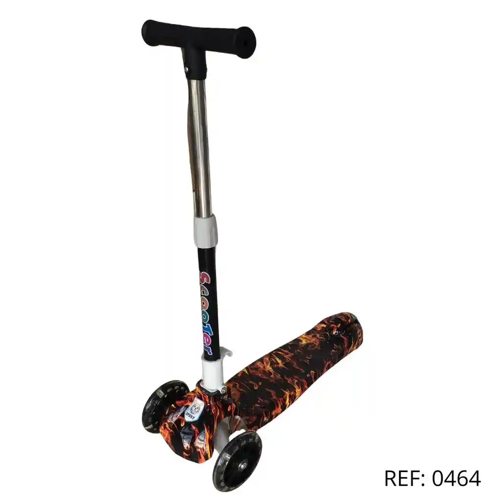 Scooter con diseño de fuego. Estilo audaz, ruedas resistentes y fácil manejo. ¡Velocidad con estilo!