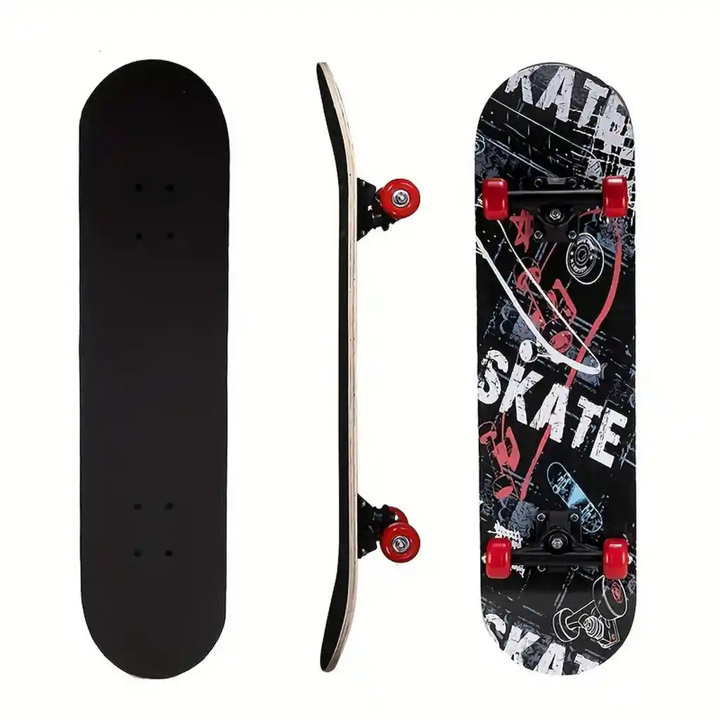 Esta patineta combina estilo y versatilidad, con una estructura sólida en color negro que ofrece una apariencia moderna y elegante. Su diseño en la parte trasera presenta un vibrante estampado multicolor, añadiendo un toque de creatividad y energía visual. Ideal tanto para chicos como para adultos, esta patineta brinda una experiencia de manejo suave y controlada, perfecta para recorridos urbanos y paseos casuales. Ficha Técnica: Dimensiones: 80 cm x 20 cm Material tabla: Madera de maple de 7 capas Baleros: ABEC 5 Truck: Aleación de acero y aluminio Tornillos de alta resistencia Llanta: Poliuretano (PU) de 60mm Edad recomendada: + años Certificado de conformidad: E5-0359-2021 Referencia: C3669 Términos de garantía:Para defectos de fábrica o retractos: Por favor revise el producto apenas lo reciba y antes de usarlo. No aplican ley de retracto o defectos de fábrica luego de usar el producto. Se manejan máximo 5 días para reportar defectos de fábrica (por ejemplo, producto funciona mal, piezas faltantes, rotas, etc). Para hacer efectiva la devolución el producto debe devolverse con el empaque original, el cual debe estar en buen estado, incluir todos los documentos y las part6es completas y sin daños.