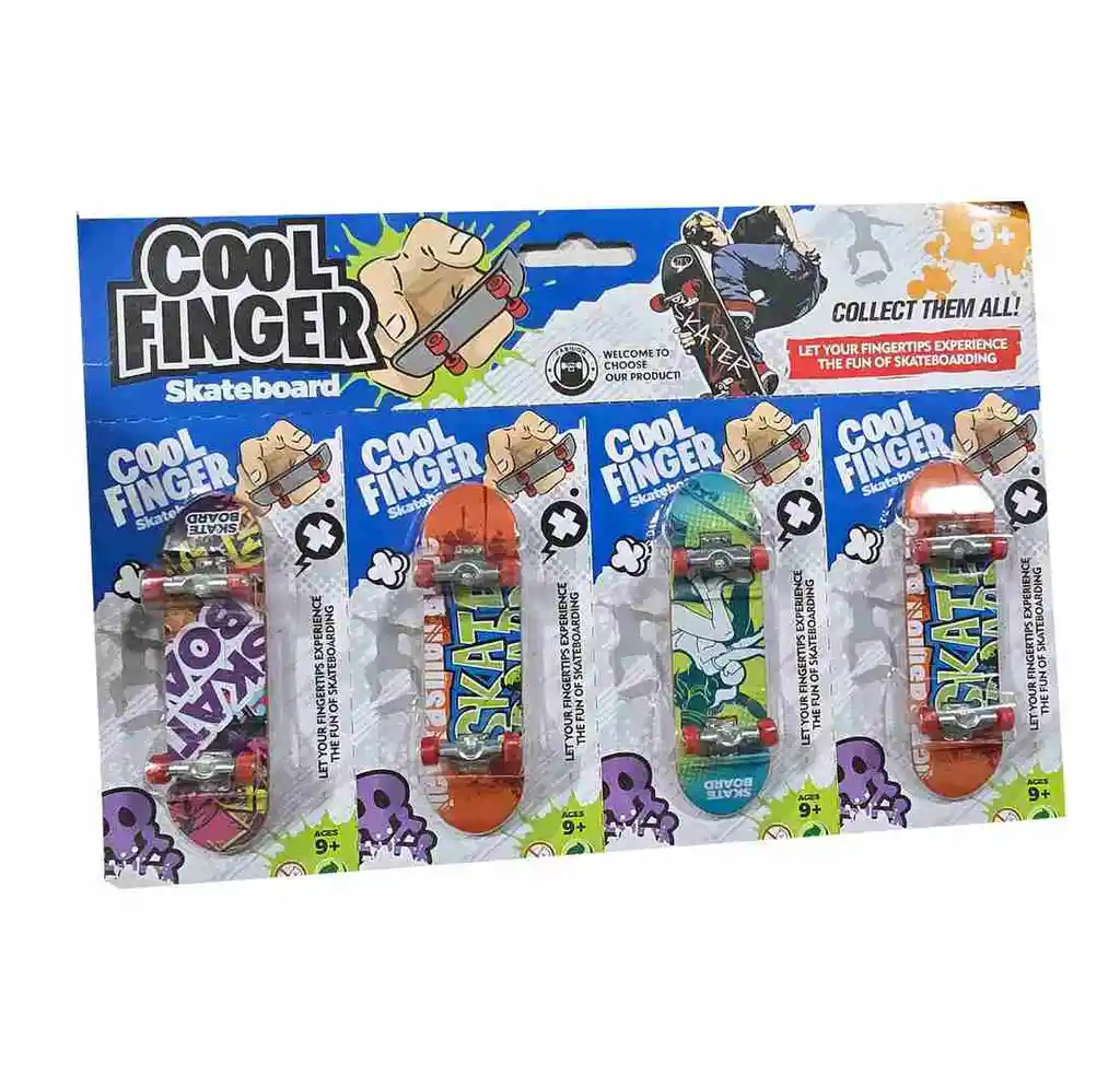 Set de 4 mini patinetas de colección para niños, ideal para jugar o exhibir. Cada una tiene un diseño único con colores vibrantes y gráficos tipo grafiti, perfectos para los amantes del estilo urbano. Resistentes y detalladas, estas patinetas en miniatura ofrecen diversión y estilo en tamaño compacto. Ficha Técnica: Material : Plástico ABS no tóxico Edad Recomendada : + 9 Años en adelante. Dimensiones de cada patineta : 9 cm x 2.5 cm Referencia: 6863-3 Certificado de conformidad: E5-0359-2021 ** _Para defectos de fábrica o retractos: \_Por favor revise el producto apenas lo reciba y antes de usarlo. No aplican ley de retracto o defectos de fábrica luego de usar el producto. Se manejan máximo 5 días para reportar defectos de fábrica (por ejemplo, producto funciona mal, piezas faltantes, rotas, etc). Para hacer efectiva la devolución el producto debe devolverse con el empaque original, el cual debe estar en buen estado, incluir todos los documentos y las partes completas y sin daños.