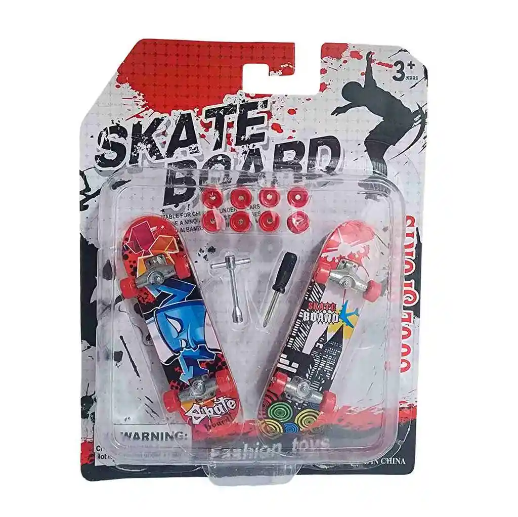 ¡Prepárate para el doble de acción y el doble de diversión con este increíble set de 2 patinetas de dedos! Este paquete completo es todo lo que necesitas para dominar el asfalto en miniatura, ya que no solo incluye dos mini skates con vibrantes y geniales diseños de estilo urbano, sino que también viene con herramientas y un juego de ruedas de repuesto para que puedas personalizarlas, ajustarlas y repararlas. Es el kit perfecto para compartir y retar a un amigo, practicar tus primeros trucos o simplemente desatar tu creatividad cambiando el estilo de tus tablas. Con todo lo necesario para empezar a rodar apenas lo sacas del empaque, este set es el regalo ideal para los pequeños amantes del skate, garantizando horas de entretenimiento y juego imaginativo sin límites. Ficha Técnica: Material : Plástico ABS no tóxico Edad Recomendada : + 3 años Dimensiones del empaque: 19 cm x 14 cm Dimensiones : 10 cm x 3 cm Referencia: JU1070 Certificado de conformidad: E5-0359-2021 ** _Para defectos de fábrica o retractos: \_Por favor revise el producto apenas lo reciba y antes de usarlo. No aplican ley de retracto o defectos de fábrica luego de usar el producto. Se manejan máximo 5 días para reportar defectos de fábrica (por ejemplo, producto funciona mal, piezas faltantes, rotas, etc). Para hacer efectiva la devolución el producto debe devolverse con el empaque original, el cual debe estar en buen estado, incluir todos los documentos y las partes completas y sin daños.
