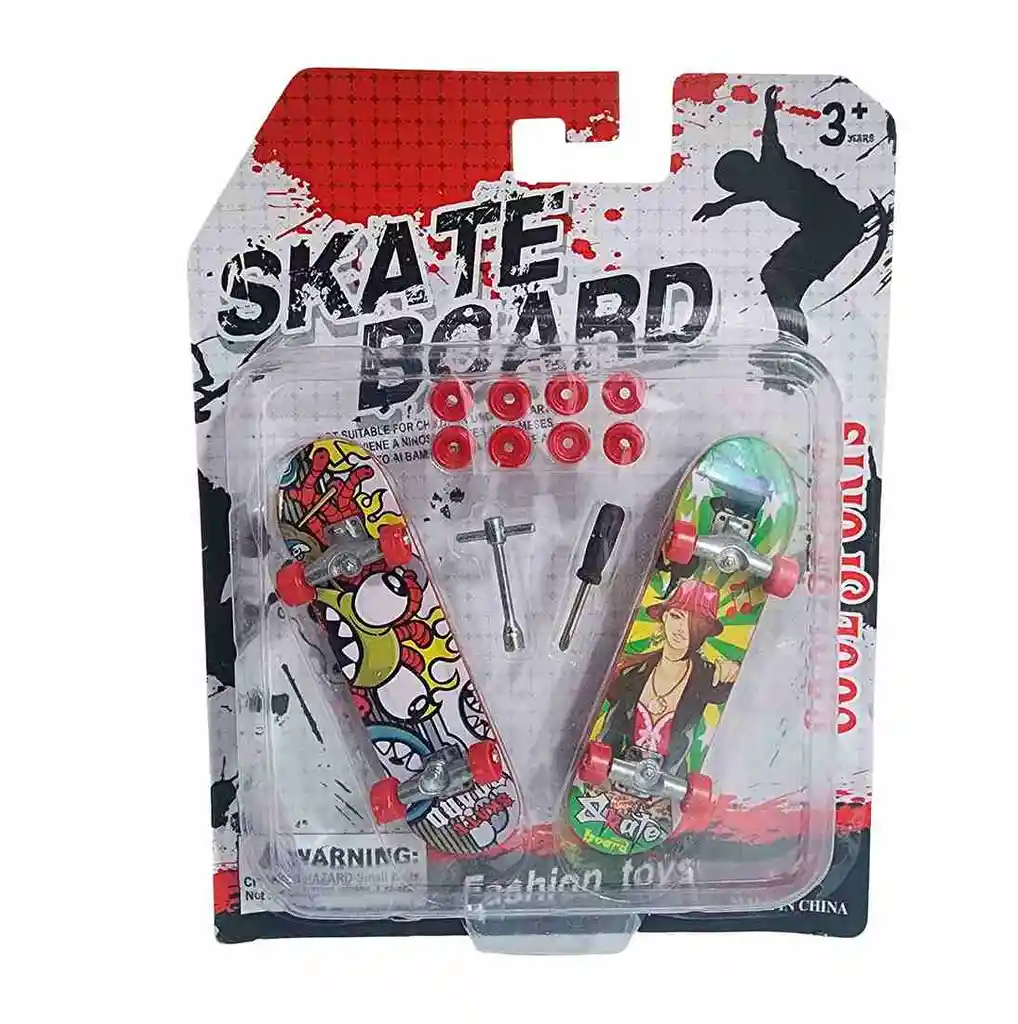¡Prepárate para el doble de acción y el doble de diversión con este increíble set de 2 patinetas de dedos! Este paquete completo es todo lo que necesitas para dominar el asfalto en miniatura, ya que no solo incluye dos mini skates con vibrantes y geniales diseños de estilo urbano, sino que también viene con herramientas y un juego de ruedas de repuesto para que puedas personalizarlas, ajustarlas y repararlas. Es el kit perfecto para compartir y retar a un amigo, practicar tus primeros trucos o simplemente desatar tu creatividad cambiando el estilo de tus tablas. Con todo lo necesario para empezar a rodar apenas lo sacas del empaque, este set es el regalo ideal para los pequeños amantes del skate, garantizando horas de entretenimiento y juego imaginativo sin límites. Ficha Técnica: Material : Plástico ABS no tóxico Edad Recomendada : + 3 años Dimensiones del empaque: 19 cm x 14 cm Dimensiones : 10 cm x 3 cm Referencia: JU1070 Certificado de conformidad: E5-0359-2021 ** _Para defectos de fábrica o retractos: \_Por favor revise el producto apenas lo reciba y antes de usarlo. No aplican ley de retracto o defectos de fábrica luego de usar el producto. Se manejan máximo 5 días para reportar defectos de fábrica (por ejemplo, producto funciona mal, piezas faltantes, rotas, etc). Para hacer efectiva la devolución el producto debe devolverse con el empaque original, el cual debe estar en buen estado, incluir todos los documentos y las partes completas y sin daños.