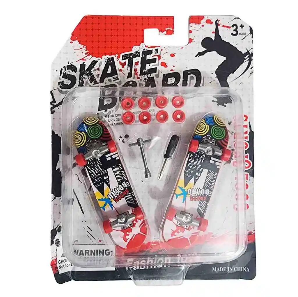 ¡Prepárate para el doble de acción y el doble de diversión con este increíble set de 2 patinetas de dedos! Este paquete completo es todo lo que necesitas para dominar el asfalto en miniatura, ya que no solo incluye dos mini skates con vibrantes y geniales diseños de estilo urbano, sino que también viene con herramientas y un juego de ruedas de repuesto para que puedas personalizarlas, ajustarlas y repararlas. Es el kit perfecto para compartir y retar a un amigo, practicar tus primeros trucos o simplemente desatar tu creatividad cambiando el estilo de tus tablas. Con todo lo necesario para empezar a rodar apenas lo sacas del empaque, este set es el regalo ideal para los pequeños amantes del skate, garantizando horas de entretenimiento y juego imaginativo sin límites. Ficha Técnica: Material : Plástico ABS no tóxico Edad Recomendada : + 3 años Dimensiones del empaque: 19 cm x 14 cm Dimensiones : 10 cm x 3 cm Referencia: JU1070 Certificado de conformidad: E5-0359-2021 ** _Para defectos de fábrica o retractos: \_Por favor revise el producto apenas lo reciba y antes de usarlo. No aplican ley de retracto o defectos de fábrica luego de usar el producto. Se manejan máximo 5 días para reportar defectos de fábrica (por ejemplo, producto funciona mal, piezas faltantes, rotas, etc). Para hacer efectiva la devolución el producto debe devolverse con el empaque original, el cual debe estar en buen estado, incluir todos los documentos y las partes completas y sin daños.