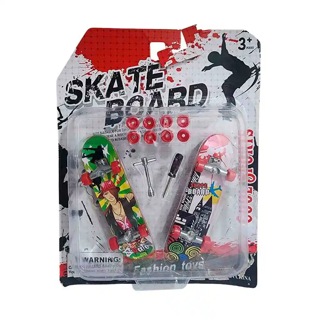 ¡Prepárate para el doble de acción y el doble de diversión con este increíble set de 2 patinetas de dedos! Este paquete completo es todo lo que necesitas para dominar el asfalto en miniatura, ya que no solo incluye dos mini skates con vibrantes y geniales diseños de estilo urbano, sino que también viene con herramientas y un juego de ruedas de repuesto para que puedas personalizarlas, ajustarlas y repararlas. Es el kit perfecto para compartir y retar a un amigo, practicar tus primeros trucos o simplemente desatar tu creatividad cambiando el estilo de tus tablas. Con todo lo necesario para empezar a rodar apenas lo sacas del empaque, este set es el regalo ideal para los pequeños amantes del skate, garantizando horas de entretenimiento y juego imaginativo sin límites. Ficha Técnica: Material : Plástico ABS no tóxico Edad Recomendada : + 3 años Dimensiones del empaque: 19 cm x 14 cm Dimensiones : 10 cm x 3 cm Referencia: JU1070 Certificado de conformidad: E5-0359-2021 ** _Para defectos de fábrica o retractos: \_Por favor revise el producto apenas lo reciba y antes de usarlo. No aplican ley de retracto o defectos de fábrica luego de usar el producto. Se manejan máximo 5 días para reportar defectos de fábrica (por ejemplo, producto funciona mal, piezas faltantes, rotas, etc). Para hacer efectiva la devolución el producto debe devolverse con el empaque original, el cual debe estar en buen estado, incluir todos los documentos y las partes completas y sin daños.