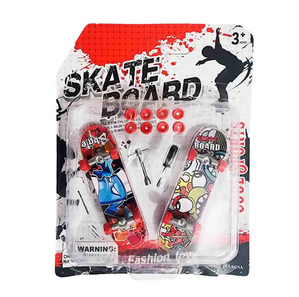 ¡Prepárate para el doble de acción y el doble de diversión con este increíble set de 2 patinetas de dedos! Este paquete completo es todo lo que necesitas para dominar el asfalto en miniatura, ya que no solo incluye dos mini skates con vibrantes y geniales diseños de estilo urbano, sino que también viene con herramientas y un juego de ruedas de repuesto para que puedas personalizarlas, ajustarlas y repararlas. Es el kit perfecto para compartir y retar a un amigo, practicar tus primeros trucos o simplemente desatar tu creatividad cambiando el estilo de tus tablas. Con todo lo necesario para empezar a rodar apenas lo sacas del empaque, este set es el regalo ideal para los pequeños amantes del skate, garantizando horas de entretenimiento y juego imaginativo sin límites. Ficha Técnica: Material : Plástico ABS no tóxico Edad Recomendada : + 3 años Dimensiones del empaque: 19 cm x 14 cm Dimensiones : 10 cm x 3 cm Referencia: JU1070 Certificado de conformidad: E5-0359-2021 ** _Para defectos de fábrica o retractos: \_Por favor revise el producto apenas lo reciba y antes de usarlo. No aplican ley de retracto o defectos de fábrica luego de usar el producto. Se manejan máximo 5 días para reportar defectos de fábrica (por ejemplo, producto funciona mal, piezas faltantes, rotas, etc). Para hacer efectiva la devolución el producto debe devolverse con el empaque original, el cual debe estar en buen estado, incluir todos los documentos y las partes completas y sin daños.