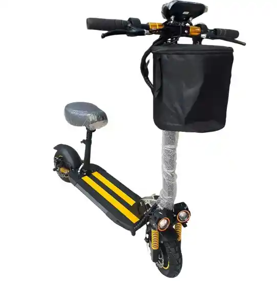 Scooter Eléctrico ES-10C-1 – Velocidad, Seguridad y Comodidad en Cada Viaje Rendimiento superior para movilidad urbana Motor de 500W con torque de 9.5Nm, permitiendo una aceleración potente. Velocidad máxima de 40 km/h, para recorrer la ciudad de manera rápida y eficiente. Capaz de subir pendientes de hasta 20 grados, facilitando el desplazamiento en terrenos inclinados. Batería de alto rendimiento y carga rápida Batería de litio 48V 13Ah, asegurando mayor autonomía y vida útil. Tiempo de carga de 5 a 8 horas, ideal para una recarga nocturna completa. Autonomía entre 15 y 35 km, adaptándose al modo de manejo y peso del usuario. Diseño pensado para la seguridad y estabilidad Llantas de 10 pulgadas de caucho + neumático, brindan una conducción estable y cómoda. Sistema de doble freno de disco por guaya, proporcionando mayor control y seguridad en frenadas. Estructura resistente que soporta hasta 150 kg, ideal para distintos tipos de usuarios. Incluye sillón y canasta, para mayor comodidad y facilidad de transporte de objetos. NOTA: Garantía de 30 días por desperfecto de fábrica, no daños humanos.