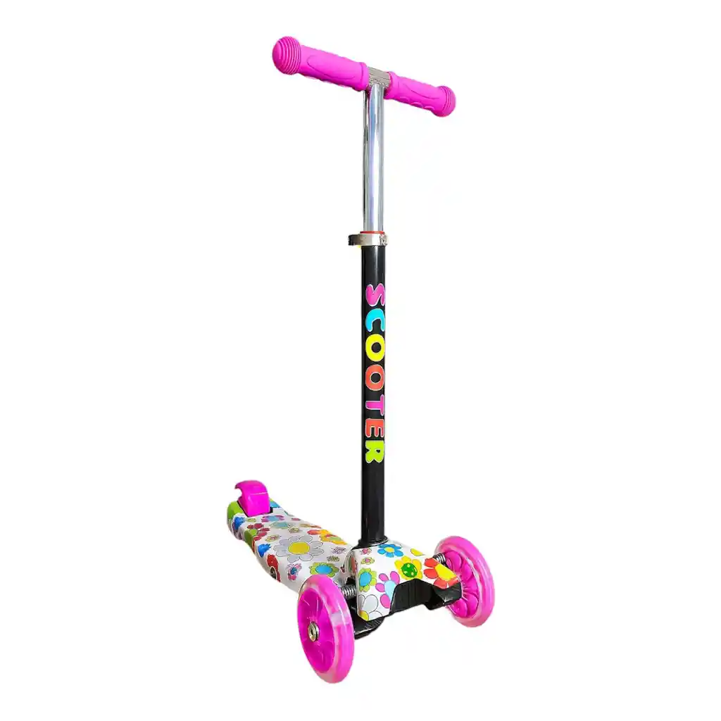 Fabricado con materiales de alta calidad, como acero al carbono y termoplásticos, el Scooter es resistente y ligero, lo que facilita su transporte y almacenamiento. Con una capacidad para soportar hasta 50 kg, es robusto. Este patinete tiene 3 ruedas que ofrecen una mayor estabilidad y soporte, además de un freno trasero para mayor seguridad durante el uso. Su base ancha y texturizada proporciona un mayor agarre. Con un cómodo manillar y un ajuste de altura, el Scooter ayuda a desarrollar el equilibrio de una manera divertida. Recomendado para niños a partir de 3 años. Material: acero al carbono y termoplásticos - Edad recomendada: a partir de 3 años - Peso máximo soportado: 50 kg - Ruedas: 3 ruedas con LED - Freno: trasero - Base ancha texturizada para un mayor agarre - Manillar con ajuste de altura y control de dirección - Plegable para facilitar su transporte y almacenamiento - Peso aproximado: 2,7 kg