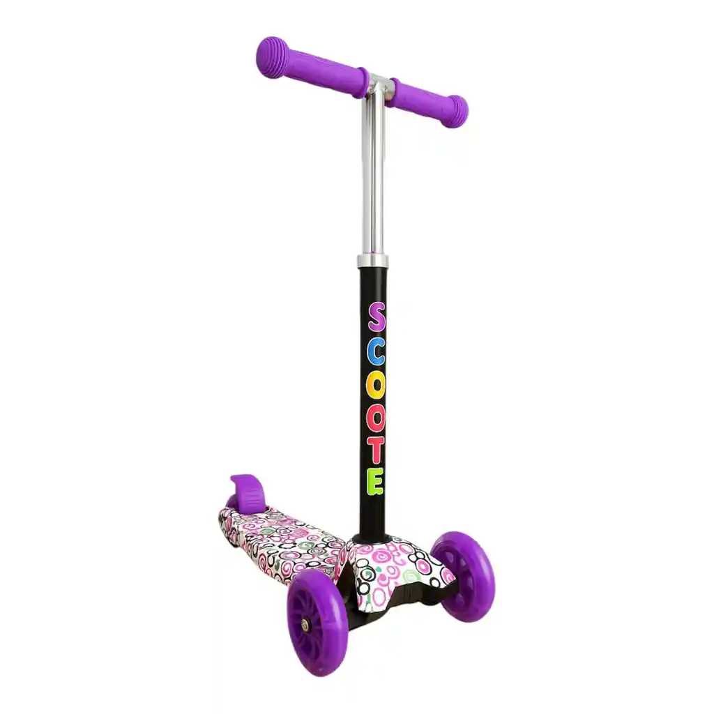 Fabricado con materiales de alta calidad, como acero al carbono y termoplásticos, el Scooter es resistente y ligero, lo que facilita su transporte y almacenamiento. Con una capacidad para soportar hasta 50 kg, es robusto. Este patinete tiene 3 ruedas que ofrecen una mayor estabilidad y soporte, además de un freno trasero para mayor seguridad durante el uso. Su base ancha y texturizada proporciona un mayor agarre. Con un cómodo manillar y un ajuste de altura, el Scooter ayuda a desarrollar el equilibrio de una manera divertida. Recomendado para niños a partir de 3 años. Material: acero al carbono y termoplásticos - Edad recomendada: a partir de 3 años - Peso máximo soportado: 50 kg - Ruedas: 3 ruedas con LED - Freno: trasero - Base ancha texturizada para un mayor agarre - Manillar con ajuste de altura y control de dirección - Plegable para facilitar su transporte y almacenamiento - Peso aproximado: 2,7 kg